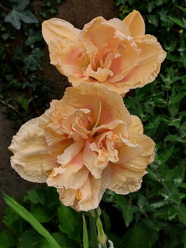 Hier blüht Big Kiss immer weiter. Schöne gefüllte Blüten jetzt. Verknittert durch den Starkregen heute Nacht.