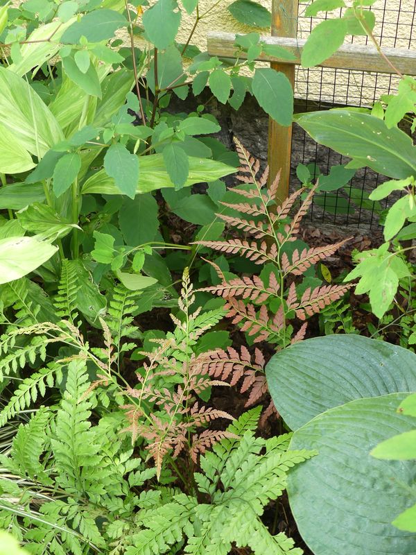 Arachniodes simulans erfreut gerade wieder mit frischen Wedeln. Die Form mit rotem Austrieb: