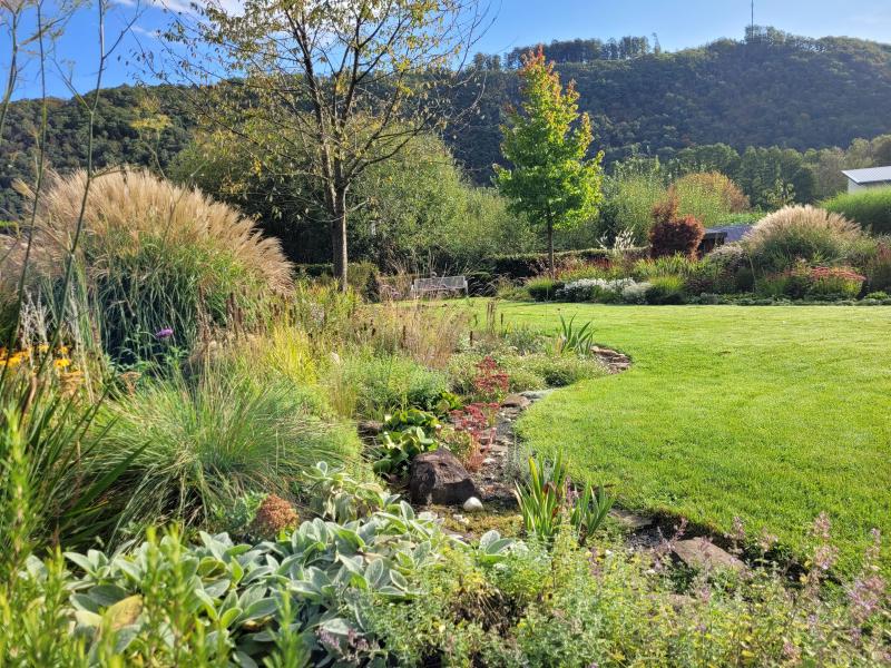 Im Steppenbeet wurde einiges - wie Helenium- bereits herunter geschnitten und leider hat sich eine Maus hier eingenistet... und eine der weißen Hems fast weggefressen... grrrrr. :-X