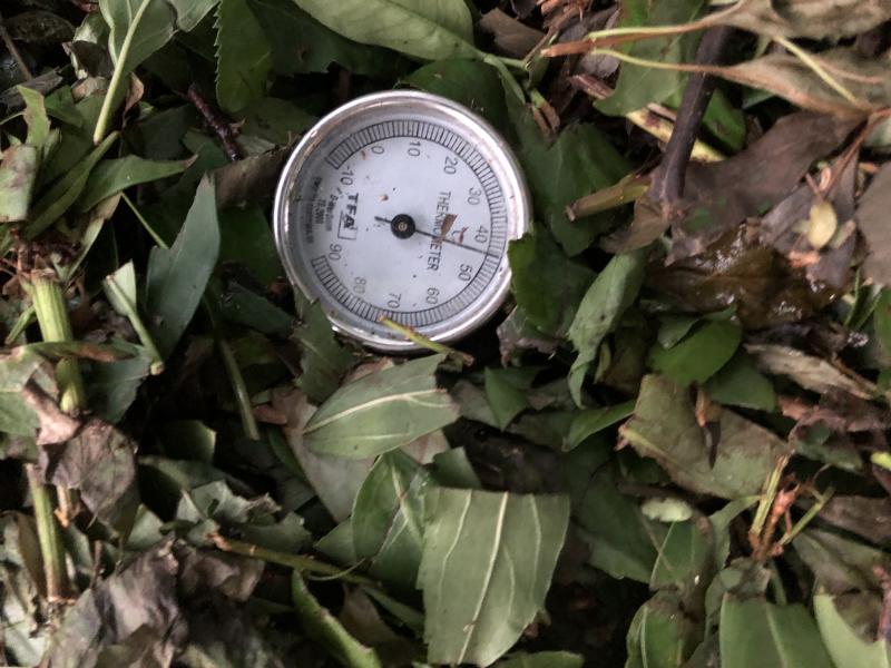 Vor zwei Wochen habe ich von benachbarte Wohnanlage den Heckenschnitt geholt, am Montag habe ich gehäckselt und 20 Liter Wasser dazu gegeben. Am Dienstag Abend war bereits 45 Grad. Paar Tage später ging bis 65.