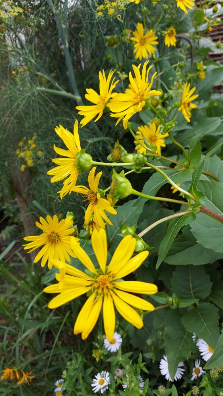 Silphium perfoliatum ist nicht so trockenresistent wie oft behauptet, und standfest auch nicht immer. Und eine üble Samenschleuder. Aber schön halt trotzdem. ;D