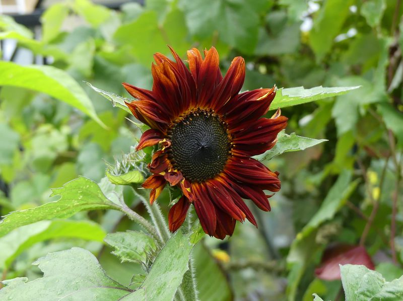 Und ich hätte so gerne mal wieder stinknormale Vogelfuttersonnenblumen. Ganze 2 haben die Schneckeninvasion im Frühjahr überlebt und wachsen zwischen den Tomaten.