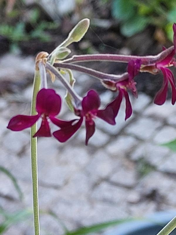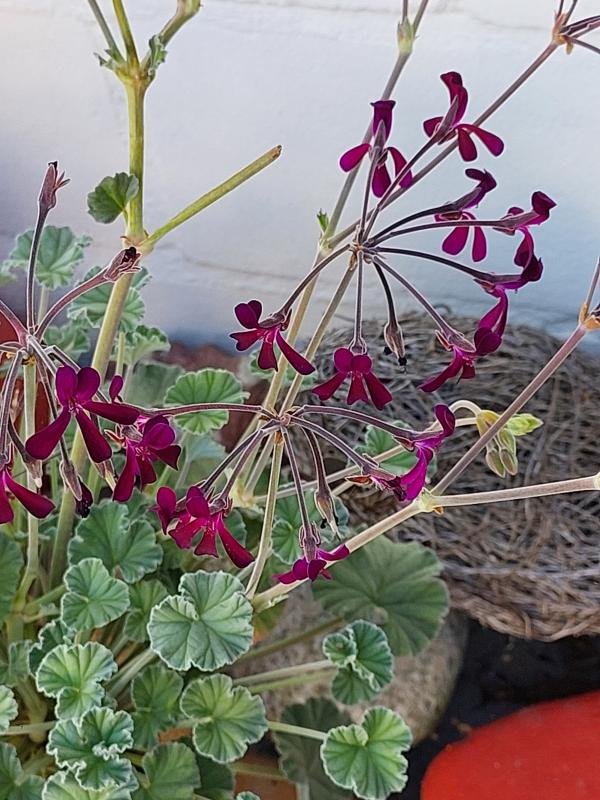 Pelargonie sidoides Burgundy hat die Sintflut relativ gut überstanden. Mir fehlt ein Stück überdachte Terrasse.