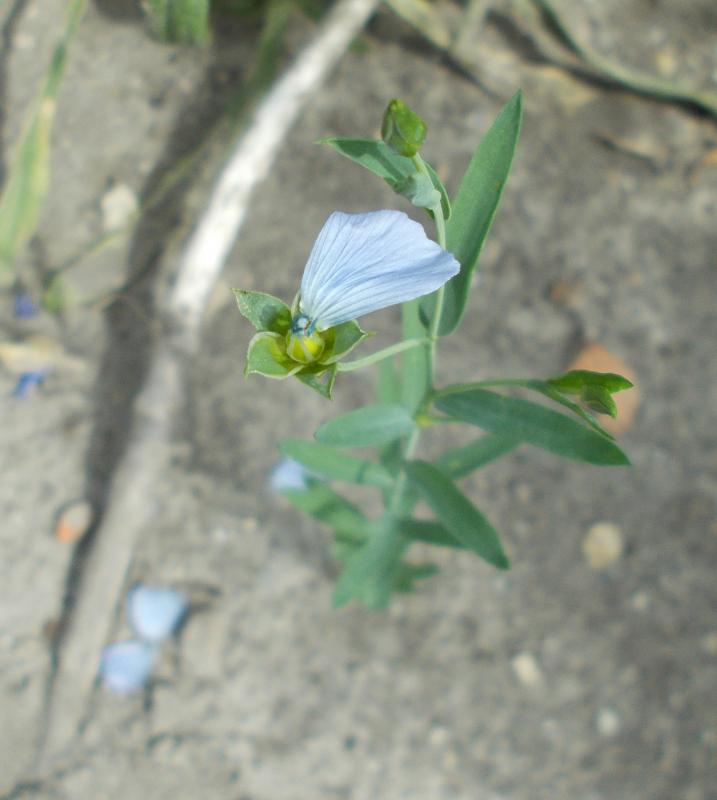 Das hier hat schon am späten Vormittag beim leisesten Hauch seine Blütenblätter fallen lassen. Hier habe ich mal ein Exemplar erwischt, wo wenigstens noch eins der fünf Blütenblätter dran war. Eventuell Lein?