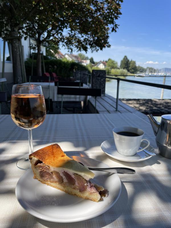 feigenkuchen mit portion (kännli) kaffee und spätburgunder weißherbst trocken