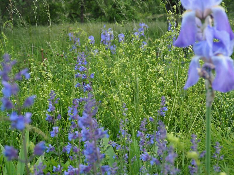 ah, hier ein Bild mit Iris pallida, Nepeta 'Walker's Low' und Galium mollugo.