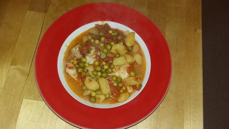 Gestern gab es Kabeljau in Tomatensauce mit Erbsen und Kartoffeln - oberlecker!