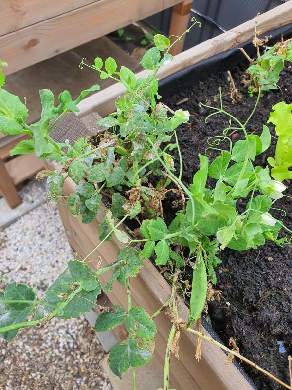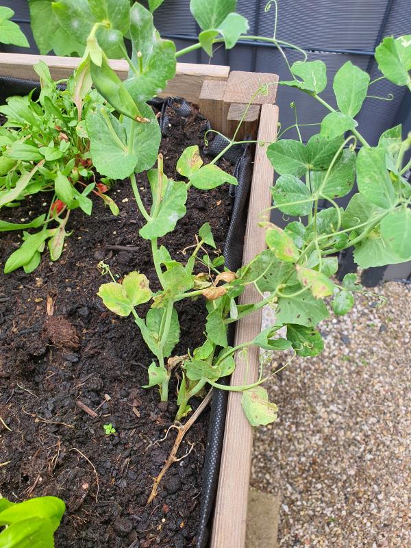 Ich habe vor ein paar Wochen nochmal Erbsen gesäht. Mal gespannt ob das noch etwas wird. Sie wachsen auf jeden Fall schon mal.