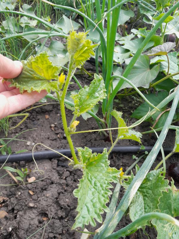 So schauen übrigens meine Melonen aus, ein Trauerspiel. Die Boule d'Or hab ich jetzt notgeerntet, die Pflanze war wirklich komplett hinüber. Der Geschmack war interessant, leicht süß und wie eine Mischung aus Melone und Gurke mit knackigem Biss. Ich hätte sie ja lieber reif geerntet, aber sei's drum.