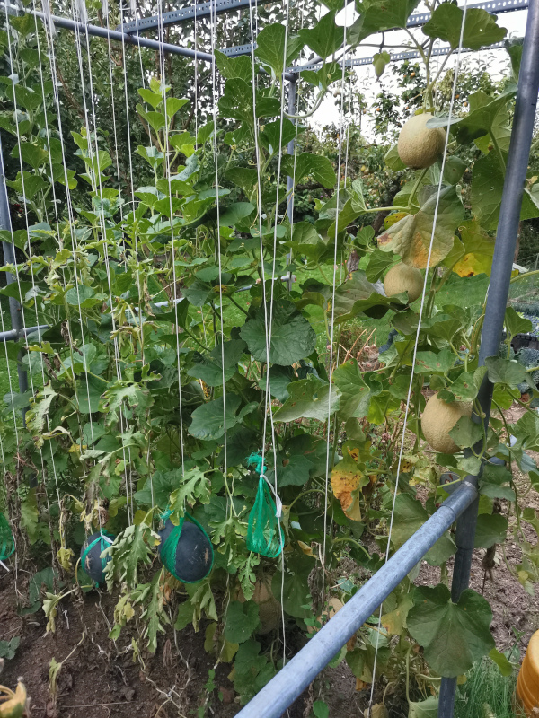 Hallo 3 wochen Regen und Nachtemperatur von 7-9 Grad haben meine hoffnungsvolle Melonenkultur gekillt, dabei waren sie gut am Start, ich hatte Hoffnung das es klappt. Mit 3 Wochen Herbst hier im Mittelgebirge war zuviel. Nächstes Jahr versuch ich es wieder. Sorten:Gris de Rennes ,Thora