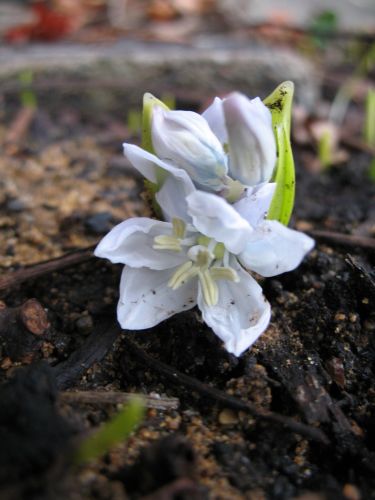 Bei mir jedes Jahr das gleiche: Scilla mitschenkoana öffnet gleich die ersten Blüten, kaum dass es aus der Erde guckt.