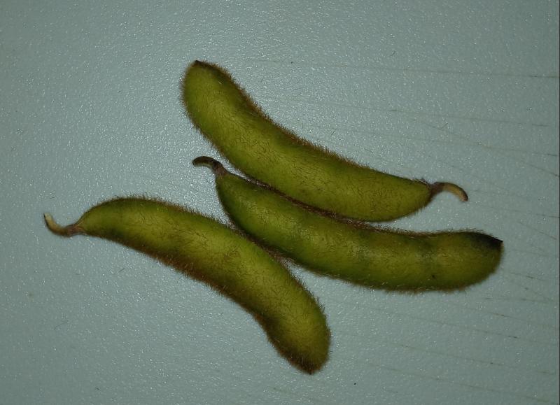 Edit: Tatsache, Sojabohnen! Wußte nicht, daß wir hier welche anbauen. Wahrscheinlich ein Testfeld.