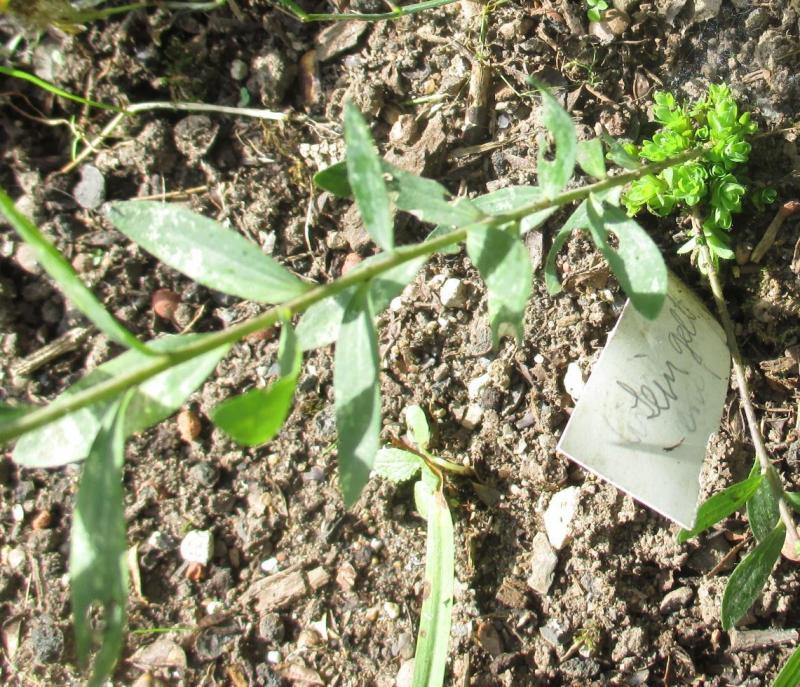 Mal wieder eine Unbekannte: Als Linum flavum letztes Jahr gesät, blüht aber rosa mit kopfigem Blütenstand, ca 30 cm hoch und erinnert an einjährigen Lein, ist aber definitiv mehrjährig ???.