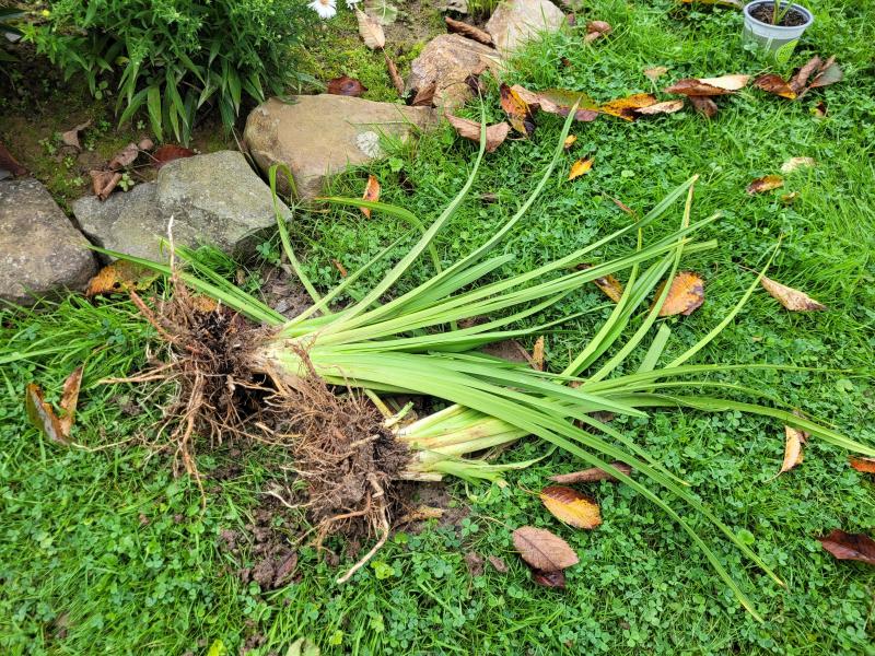 Habe gerade 2 dicke Fächer meiner dunkelviolettroten Hem 'Purplelicious ' ausgegraben. Außerdem 2 oder 3 kleinere Töpfe mit Hem 'Double River Wye ', halb gefüllt Gelb.