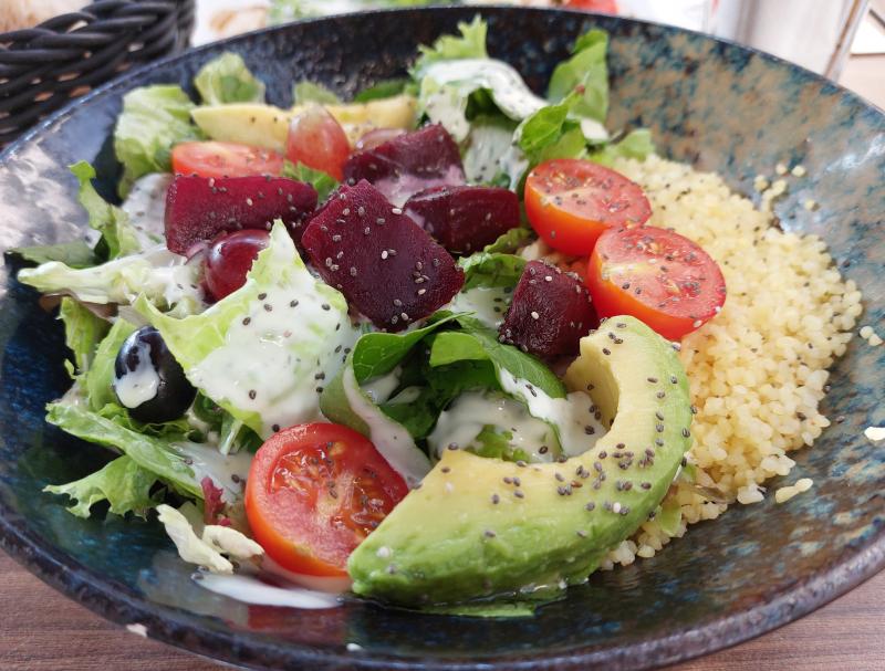 Gestern war ich in der Stadt und hatte vorm Nachhausefahren nich einen Salat mit roter Bete, Avocado und gedämpften Bulgur