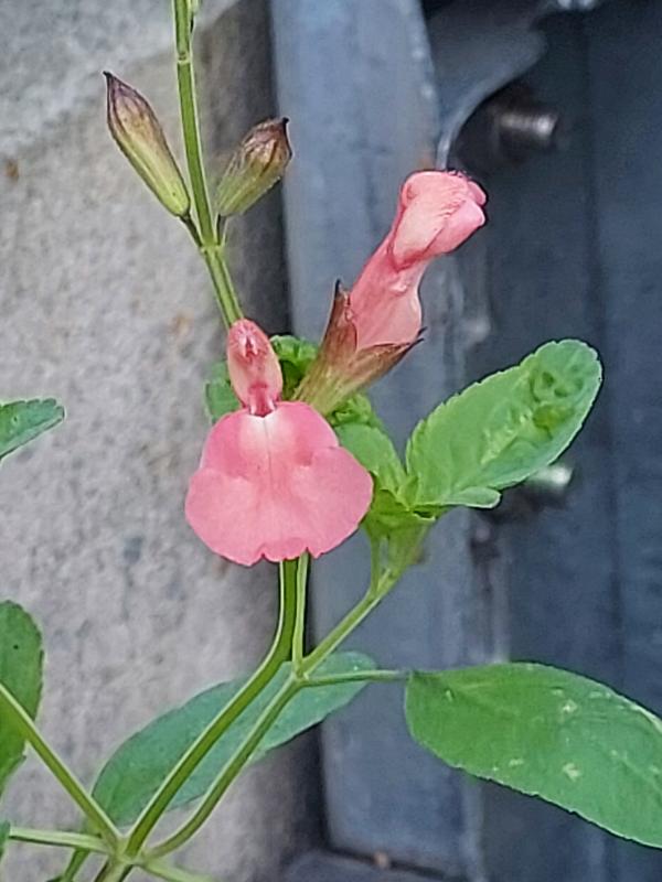 Die 1. Blüten an einem lachsfarbigen Salvia mycrophylla Steckling aus Belgien.