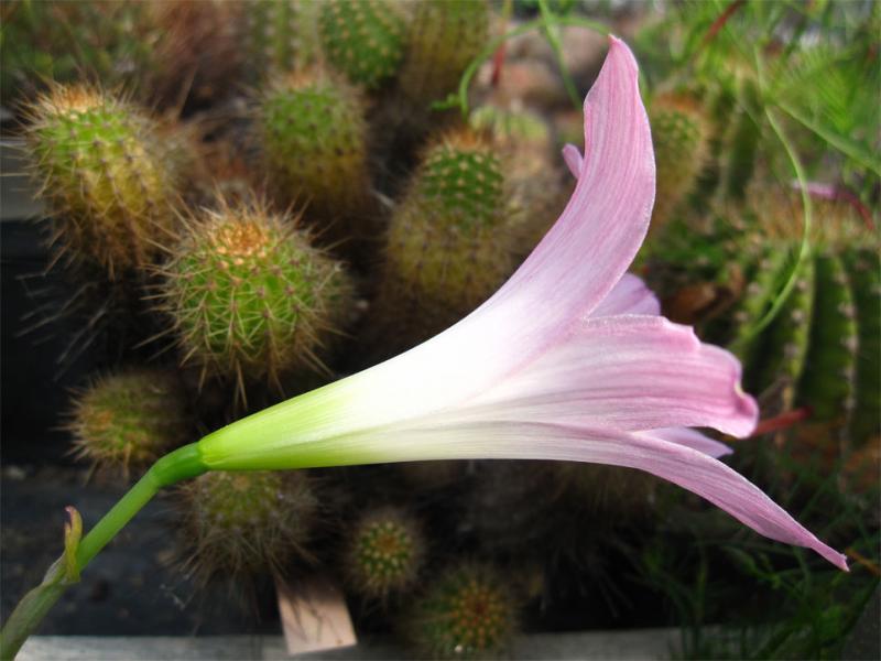 Heute bin ich endlich mal dazu gekommen, meine Fotos der letzten Wochen zu sortieren, anbei ein Bild von Habranthus robustus (?), vor ein paar Jahren von Kasbek erhalten, einfach in einen kleinen Topf versenkt, steht den Sommer über draußen, bei Frost innen im Keller auf der Fensterbank, nahezu trocken gehalten.