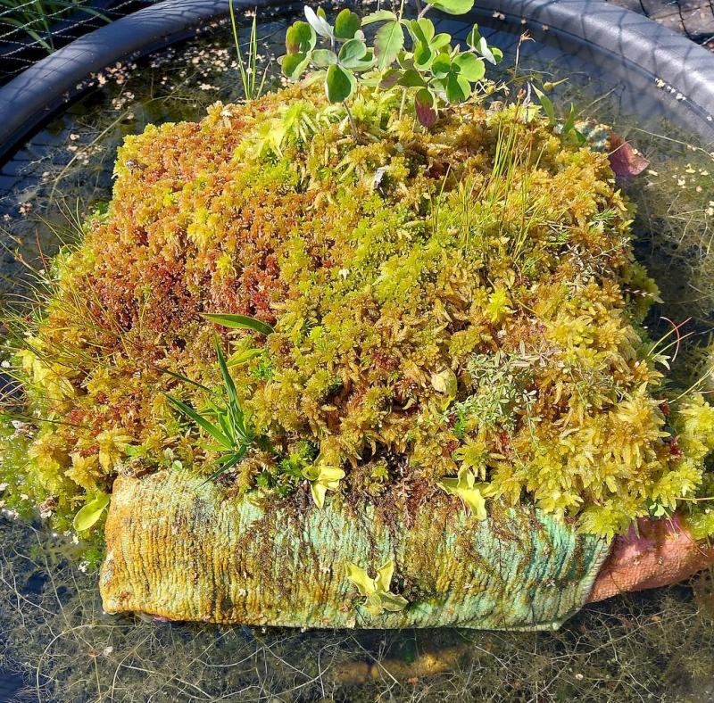 Auf dem Schwimmkörper das Handtuch ausbreiten eingeweichten Lehm darauf verteilen und vielleicht noch etwas Schlafmoos auf den Rand und fertig ist dias Sonderbiotop.