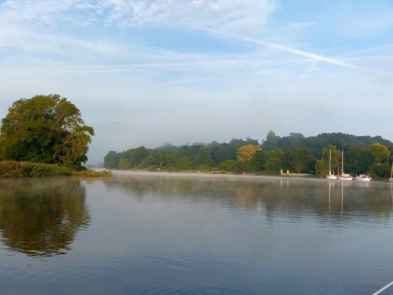 Herrliche Morgenstimmung auf dem Wasser - leider Flaute. Später auffrischender, günstiger Wind aus West.