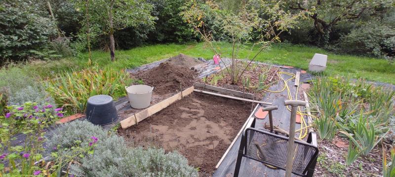 Das geht nur cm-weise vor sich. Gestern hats geregnet und der lehmige Boden ist schwer zu bearbeiten geworden.