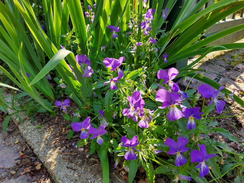 Herbergsonkel, das sind alles Nachkommen aus Deinen Samen von Viola corsica. Die meisten Pflanzen sind zweijährig, die ersten Nachkommen aus diesem Jahr sind schon zu sehen. Im Irislaub fühlen sie sich wohl, die Iris verträgt diese zierlichen Gesellen auch und so wird das steife Laub schön herqusgeputzt :D.