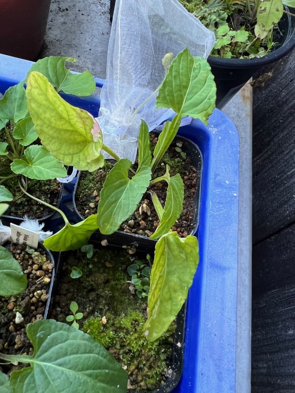 Viola diffusa ssp. tenuis Aussaat im Februar 2023, spendiert bis jetzt nur kleistogame Blüten. Die Samen sammle ich gern.