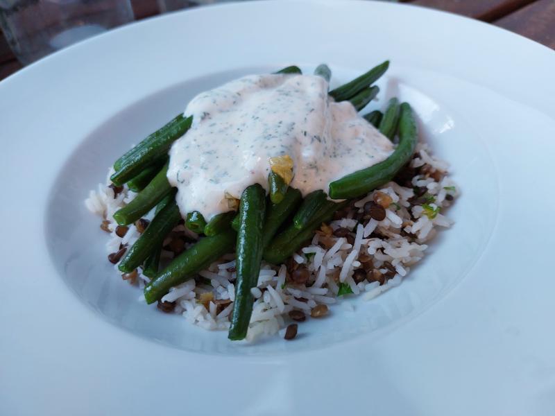 Linsenreis mit grünen Bohnen und Minzjoghurt