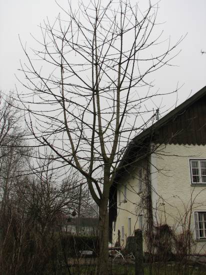 so ein häßlicher baum gehört gefällt!da sind ja noch nicht einmal blätter dran- geschweige denn kirschen.