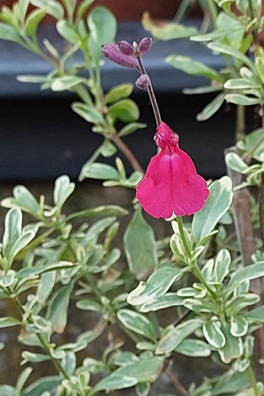 Die panaschierte greggii "Variegata" hat ganz kleines Laub und Blütchen. Das war ein guter Kauf. Alle Salvias vom Kräuter Simon sind angegangen, die ersten Stecklinge schon gemacht.