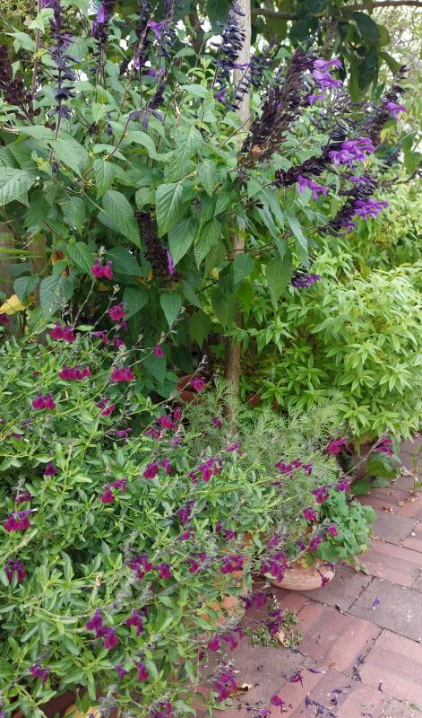 Die letzte der bei Kräuter Simon in diesem Jahr gekauften Salvien blüht nun auch. Salvia Maraschino. Tolle Farbe.