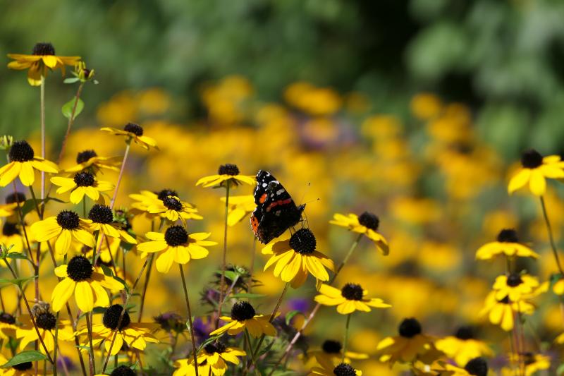 am sonntag an der unteren oder neben einigen flatterhaften weißlingen immerhin von ferne wenige tagpfauenaugen und ein gierig saugender admiral ganz nahe.