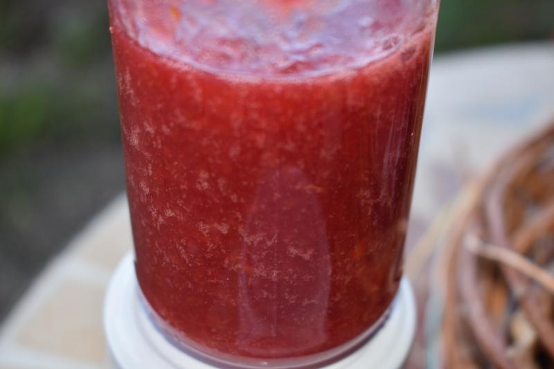 dann zum Kochen bringen, wenn der Zucker sich aufgelöst hat, mit Mixstab pürieren, 7 Min. unter Rühren köcheln lassen und abfüllen