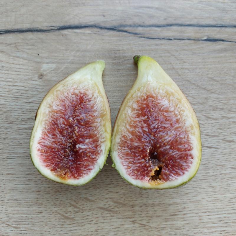 Beide Feigen waren ausgezeichnet mit guter Süße und Aroma. DlR noch süßer und mit dünnerer Haut, geschmacklich irgendwie zwischen den Beerennoten vieler Feigen die innen rot sind und melonigen Noten. Feinzelliges Fruchtfleisch.