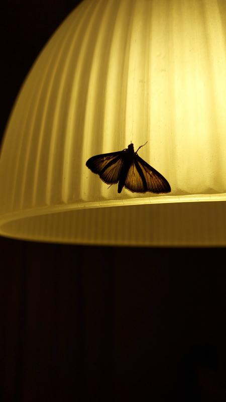 Wenn ich aus dem Urlaub zurück bin, dann stelle ich ein Foto ein von einem Nachtfalter, der mich an einen Zünsler erinnert. Ich habe keine Ahnung, welcher Falter es ist.