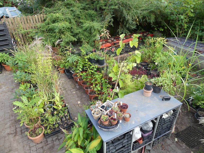 Und wo wir gerade dabei waren mal Bilder vom großen Topfquartier, nachdem ich es heute endlich mal wieder ausgeputzt, durchsortiert und einiges ausgepflanzt habe. Irgendwie wird es trotzdem nicht weniger. ::)