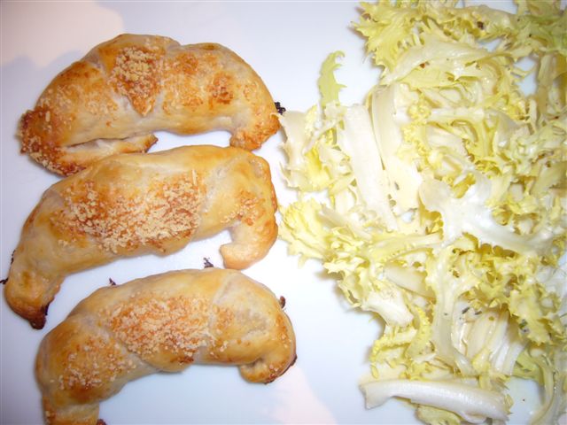 Heute gab es:Schinken-Gipfeli mit Frisée, danach einen Fruchtsalat