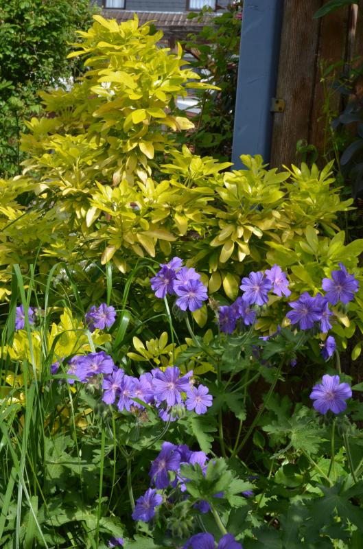 G. nodosum 'Clos du Coudray' wird auch bunt. Steht bei mir vollschattig.