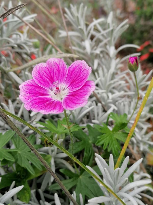 Ab und zu kommt noch eine Blüte: Geranium cinereum 'Jolly Jewel Salmon'