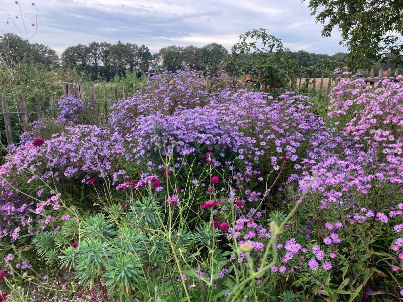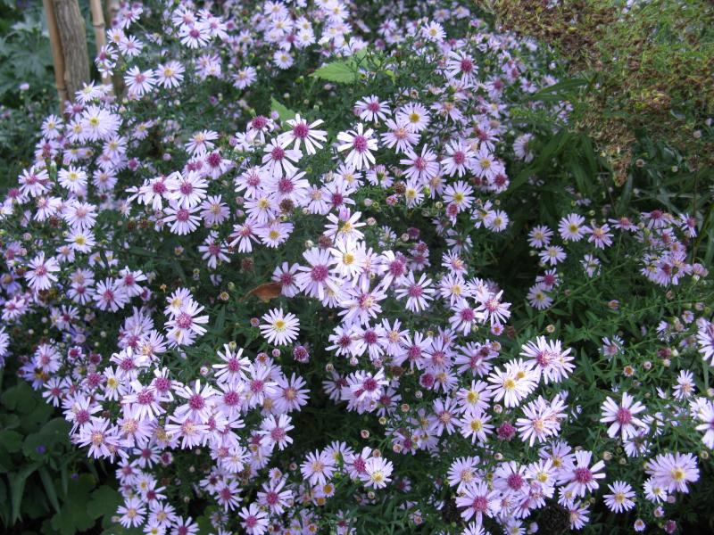 Aster cordifolius `Little Carlow` Macht sich seit vielen Jahren großartig, aber musste sie nach Sturm und Regen bisserl unterstützen weil Höhe 120cm, da legt sie sich nieder.
