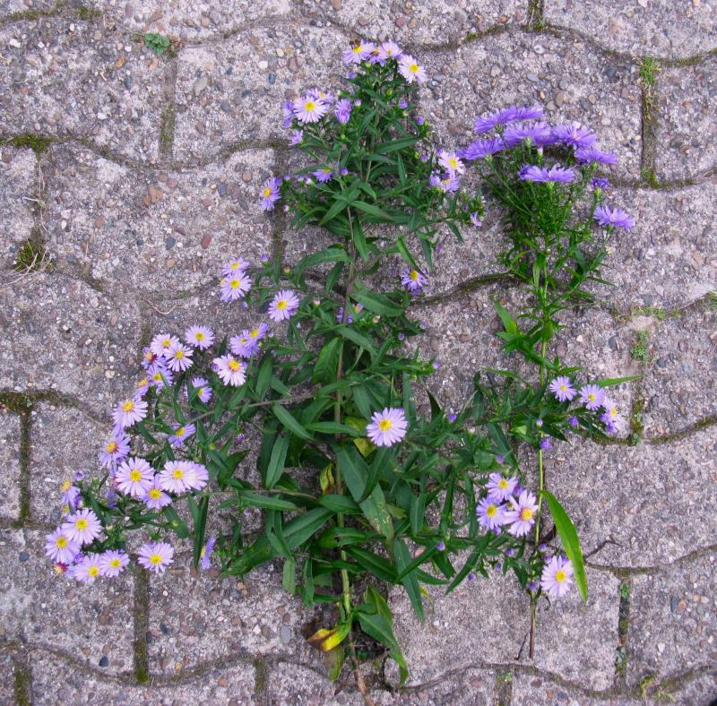 Ich habe Nightshade und Glow in the Dark im Garten. Der Sämling stammt vermutlich von einer Aster ab, die Blaue Lagune recht ähnlich ist, die jedoch höher wird und die im Gegensatz zu der Kissenaster streng horstig mit einem festen Wurzelstock wächst.