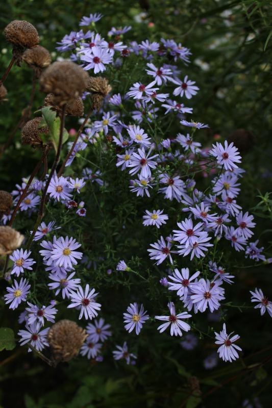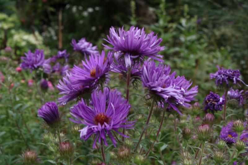 Hier im Vordergrund (die hohe dunkle Aster ist 'Violetta'):