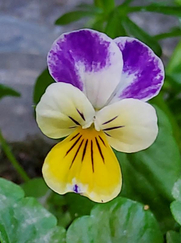 links Viola mandsh. albo-variegata Sämling grün rechts Viola mandsh. albo-variegata Selbstaussaat beide von 2023