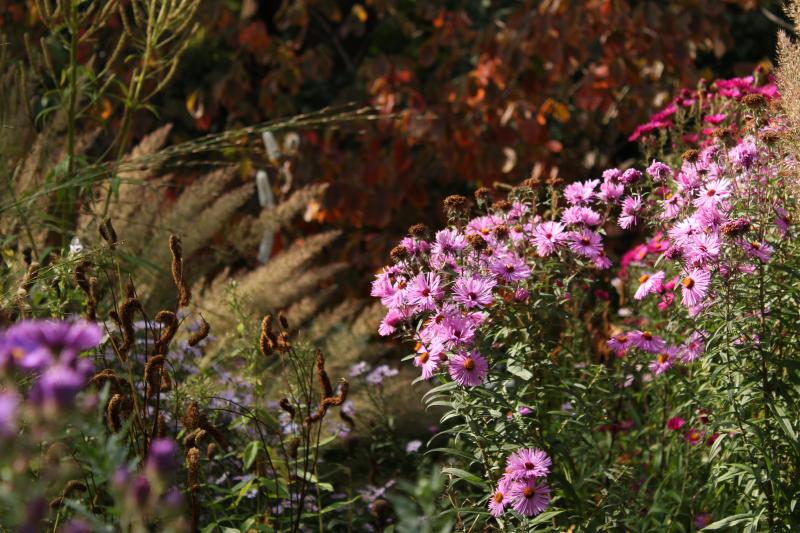 Astern kann man jedenfalls gar nicht genug haben, mittlerweile stehen welche in allen Ecken des Gartens, wo sie im September und Oktober nochmal für einen krönenden Abschluss des Gartenjahres sorgen. Auch so manch andere Staude hat sich noch einmal zu einer kleinen Nachblüte entschlossen, wie hier Geranium 'Orion', welches mit seinen riesigen blauen Schalenblüten schon im Frühsommer für Farbe sorgte. Bald wird sich das Laub glutrot färben, aber die Herbstfärbung der Stauden, Sträucher und Bäume fängt gerade erst zaghaft an.