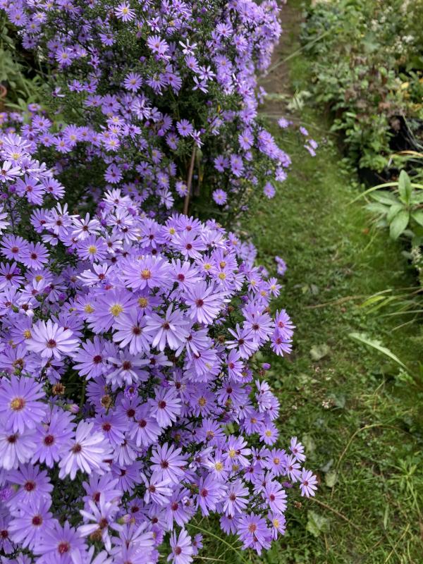 Die ‚Vasterival' fand ich vor Jahren so schön, das ich wider meine Vorsätze es doch noch mal mit den novi- belgii probierte. Das habe ich bereut, nie wieder dieses Wucherzeug, außer mit Wuchssperre. Dann doch lieber laterifolius, die ewig blühende ‚Pink Star‘ oder die in der Sichtung (mein ich) als entbehrlich eingestufte cordifolia ‚Little Carlow‘ die ewig blüht und keine Ausläufer macht.