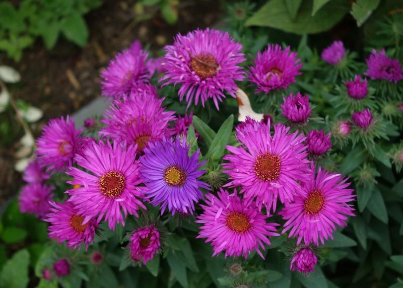 Und hier habe ich mal eine Blüte von 'Purple Dome' zwischen die von 'Vibrant Dome' gesteckt, so sieht man den Farbunterschied ganz gut.