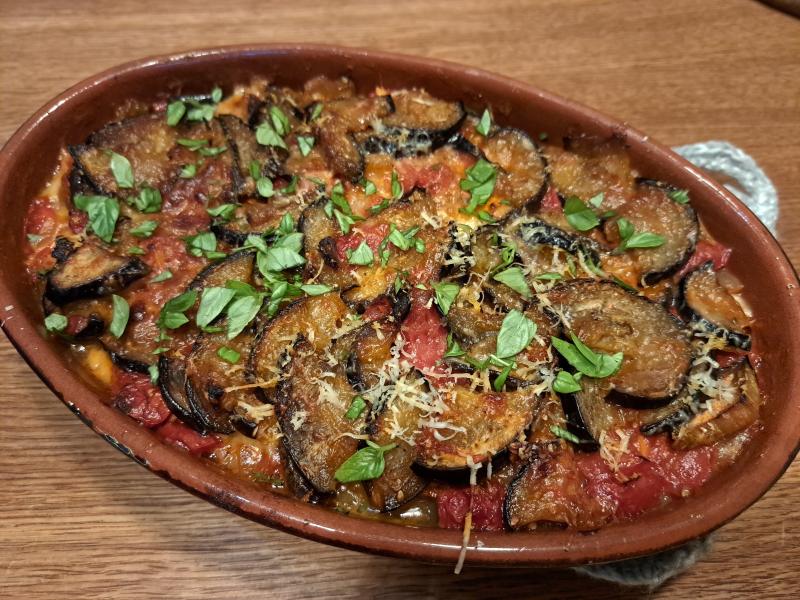 Das Rezept klingt wie Parmigiana di Melanzane plus Kartoffeln. :D