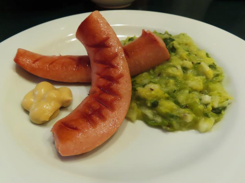Zuerst ein Rest Kartoffelsuppe mit Wienerle vom Vortag.
