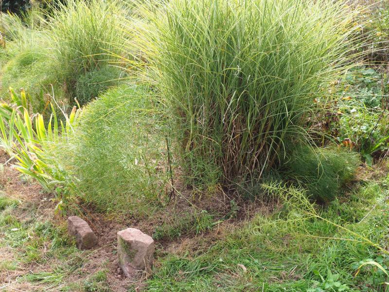 das 3. Exemplar hatte was gelitten, sah im Frühjahr sehr schlecht aus und hat sich jezt durchgesetzt. Gras aus Gras jäten ist eine spezielle Übung. Hier drei Peucedanum officinale.