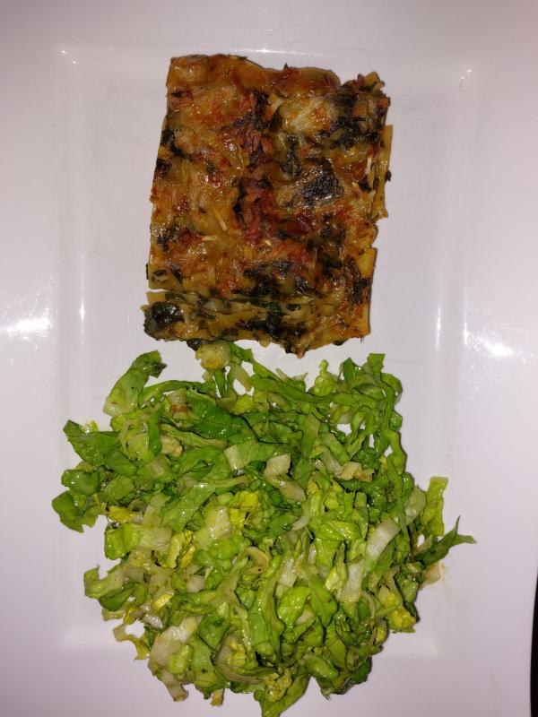 Und heute gab's Penne mit Chinakohl, Belugalinsen, Tomaten und Parmesan, dazu Zuckerhutsalat