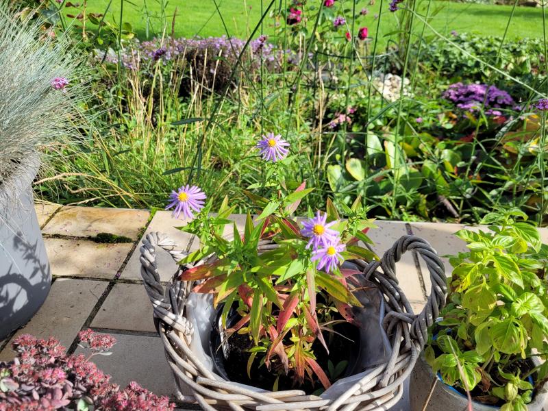 Ein Neuankömmling. Bei Herbstpflanzungen bin ich ja etwas unsicher, konnte aber nicht widerstehen. Aster cordifolius Little Carlow. Noch klein, aber eine hübsche, zarte Blüte. Die allmähliche Rotfärbung der gelben Röhrenblüten gefällt mir ganz besonders.